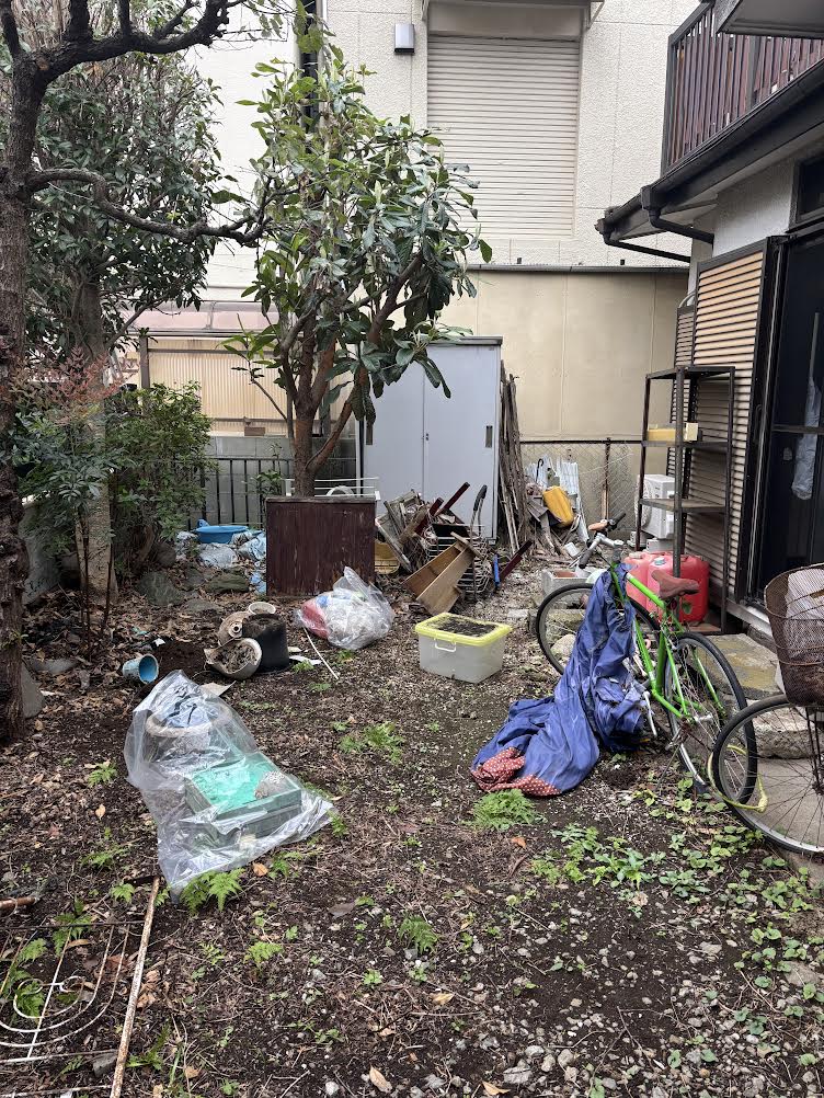 お庭には大型家具や自転車、植木鉢、工具、ポリタンク等々、あらゆる物があり物置の中の物も全て片付けさせていただきました。